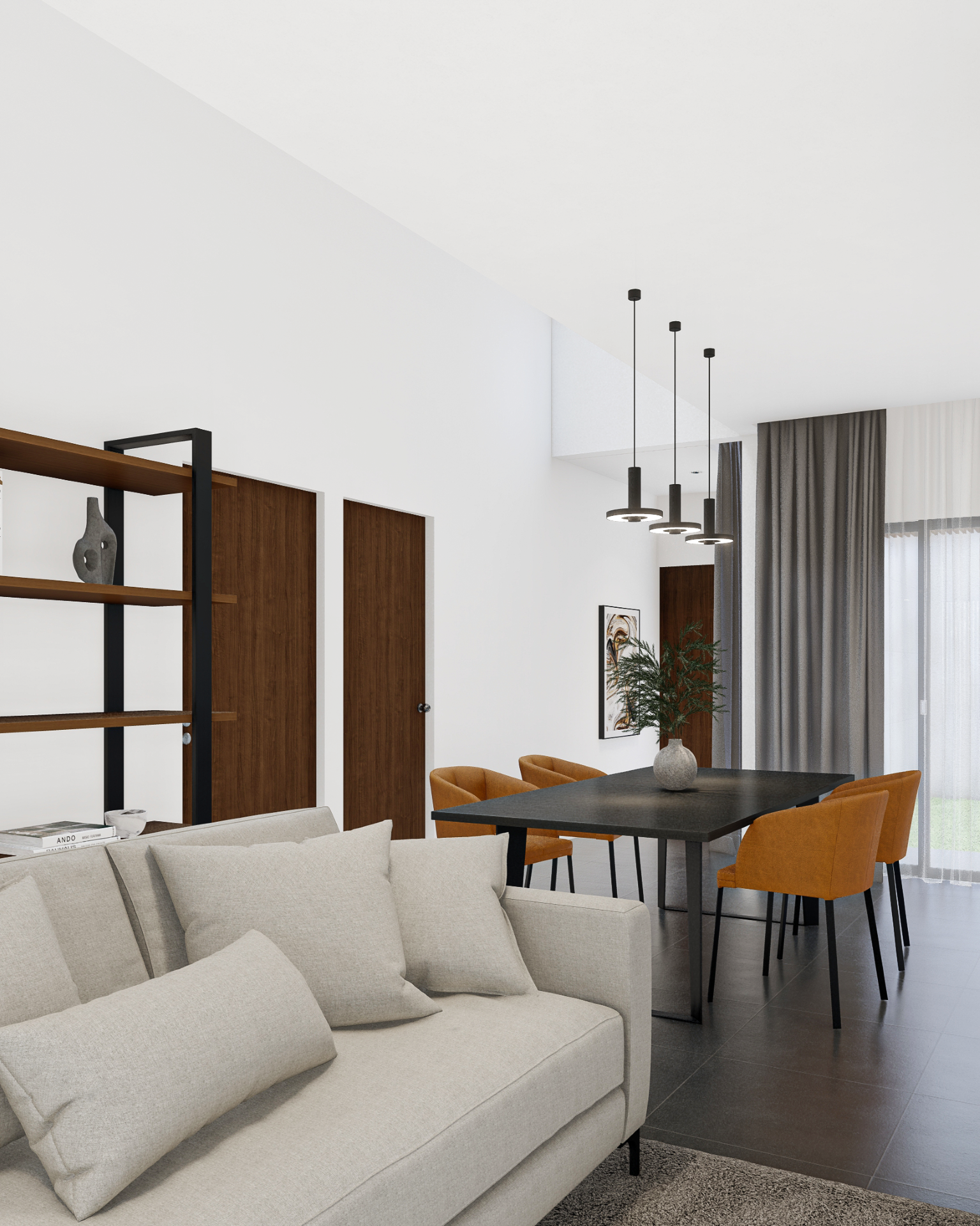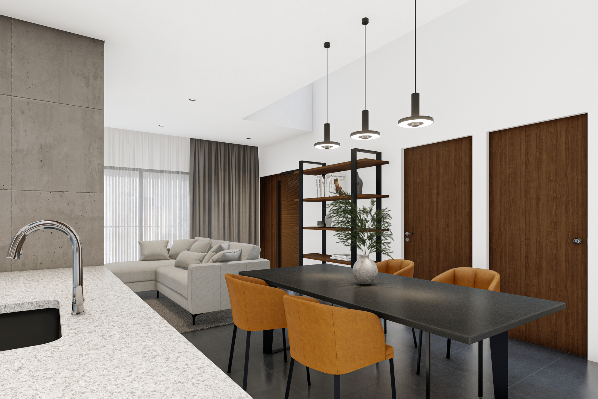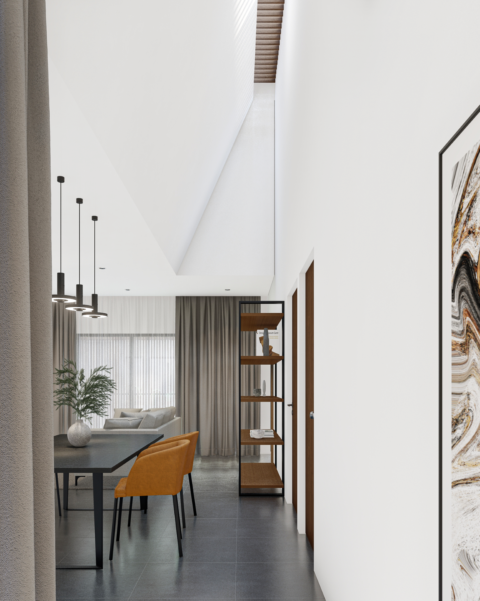 Proyek hunian ini dirancang sebagai jawaban atas kebutuhan rumah tinggal kontemporer yang mampu menghadirkan ketenangan di tengah konteks lingkungan urban. Arsitektur bangunan menampilkan ekspresi yang tenang, tertutup, dan terkendali dari luar, namun perlahan membuka diri ketika penggunanya memasuki ruang dalam. Pendekatan ini menciptakan kontras antara fasad yang bersifat protektif dengan interior yang hangat dan terang.