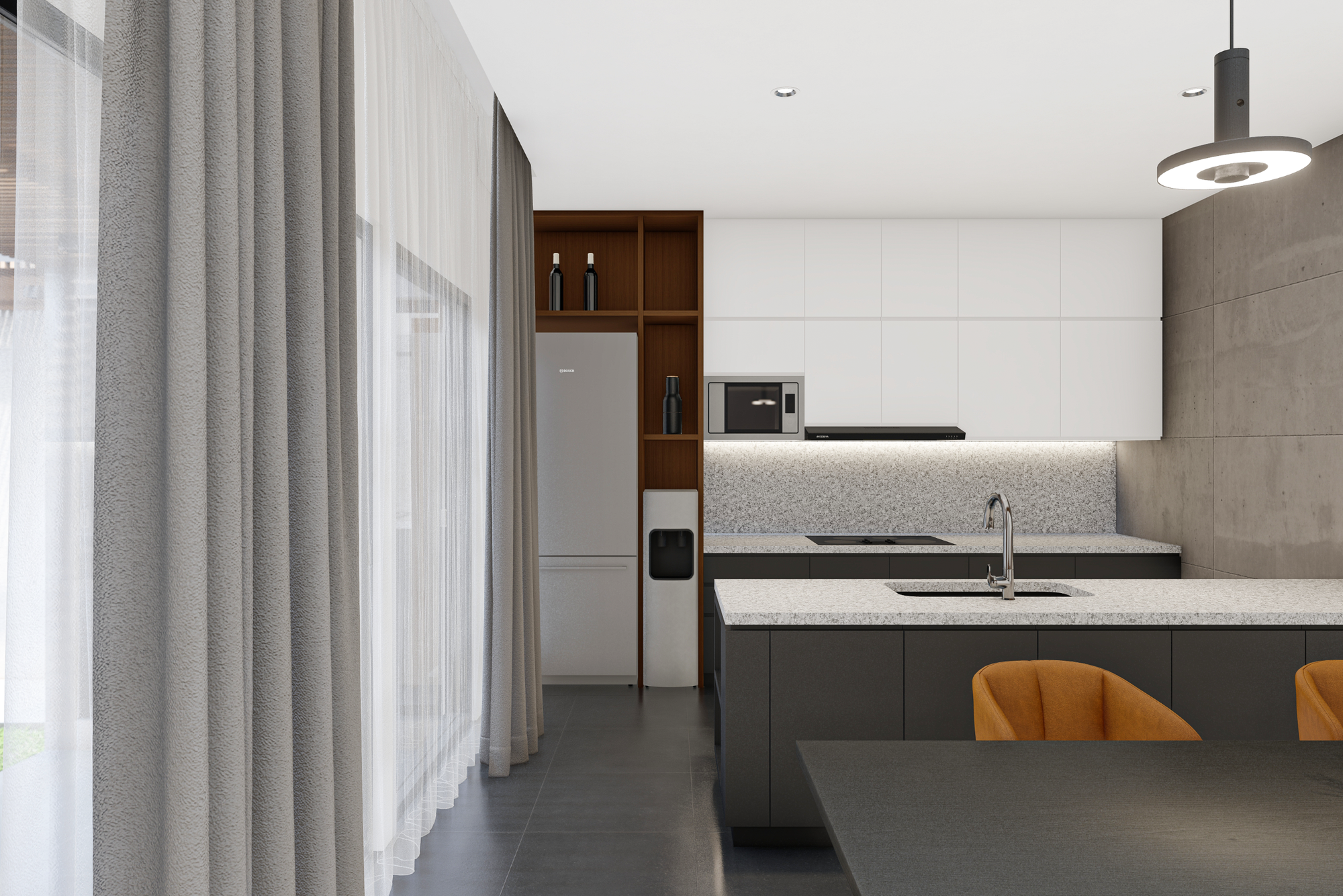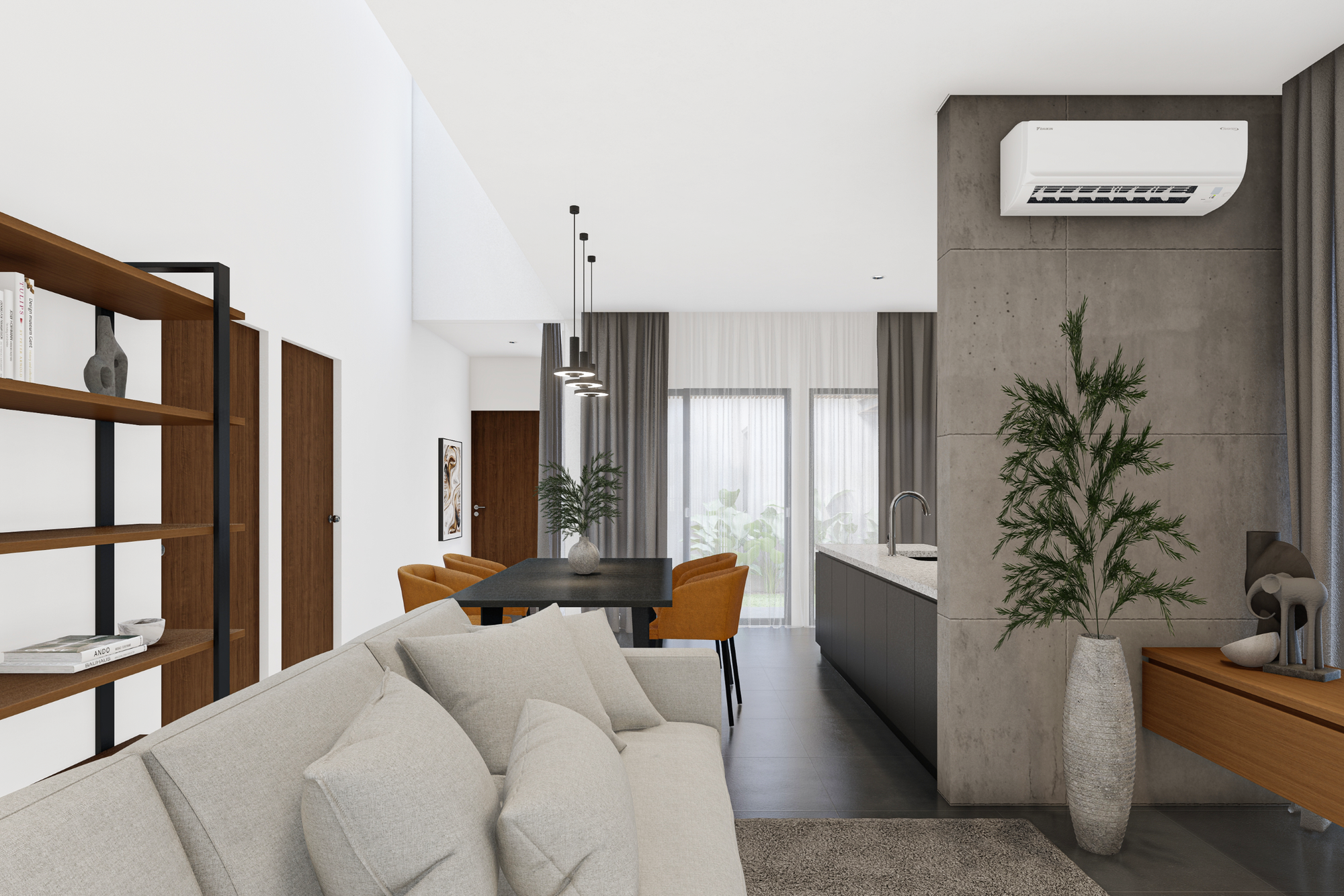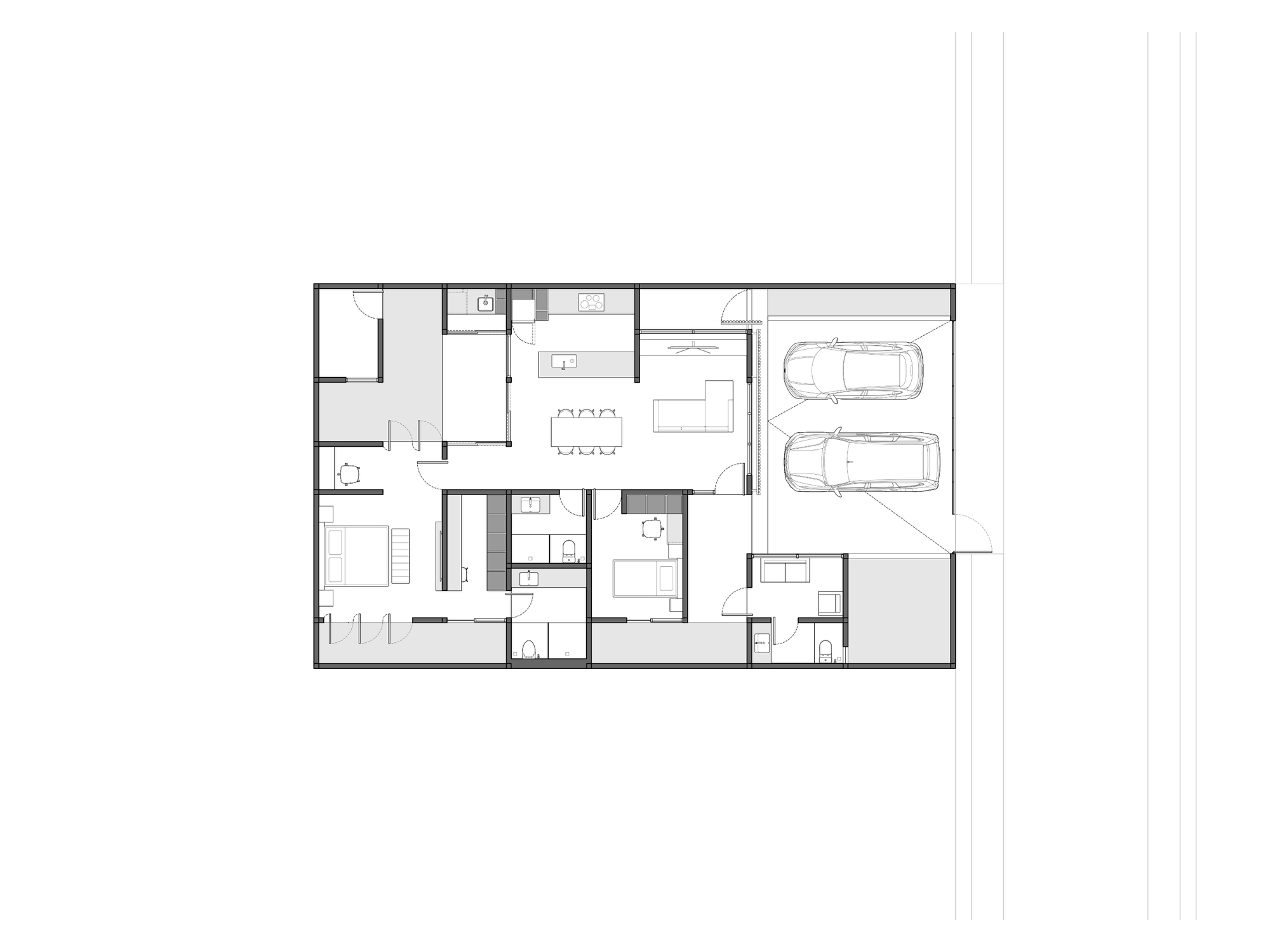 Proyek hunian ini dirancang sebagai jawaban atas kebutuhan rumah tinggal kontemporer yang mampu menghadirkan ketenangan di tengah konteks lingkungan urban. Arsitektur bangunan menampilkan ekspresi yang tenang, tertutup, dan terkendali dari luar, namun perlahan membuka diri ketika penggunanya memasuki ruang dalam. Pendekatan ini menciptakan kontras antara fasad yang bersifat protektif dengan interior yang hangat dan terang.