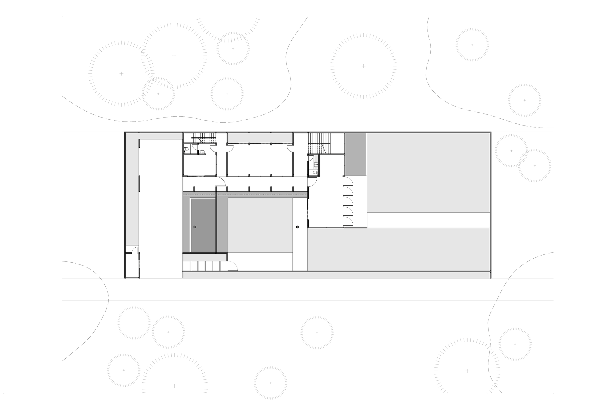 Massa bangunan utama dibagi menjadi beberapa volume yang saling berdialog. Tujuan utamanya adalah menciptakan integrasi antara bangunan dengan lanskap, sekaligus menciptakan pengalaman ruang yang gradual, dengan mempertimbangkan aspek tropis.